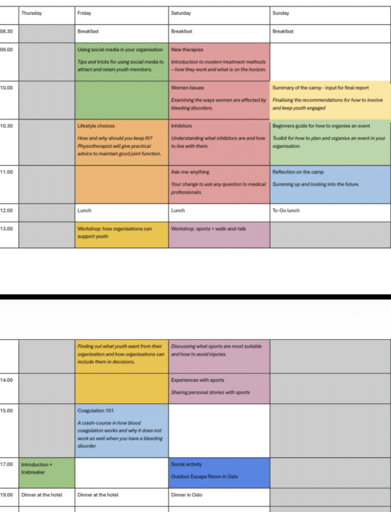 There are 30 places available in total and we have the opportunity to send 4 participants from Norway. Participants must have a bleeding disorder and be between 18 and 30 years old when the camp takes place.